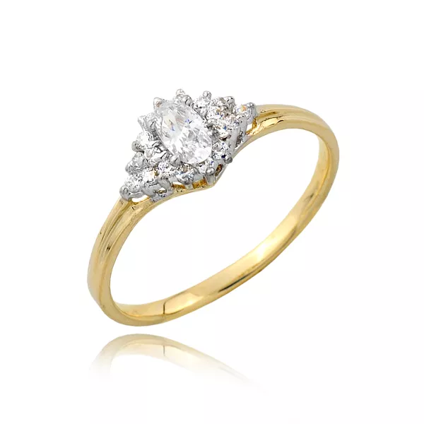 Stylowy pierścionek będący doskonałym wyborem dla osób ceniących jakość i estetykę. Subtelny połysk kamieni pięknie współgra z kolorem złota.