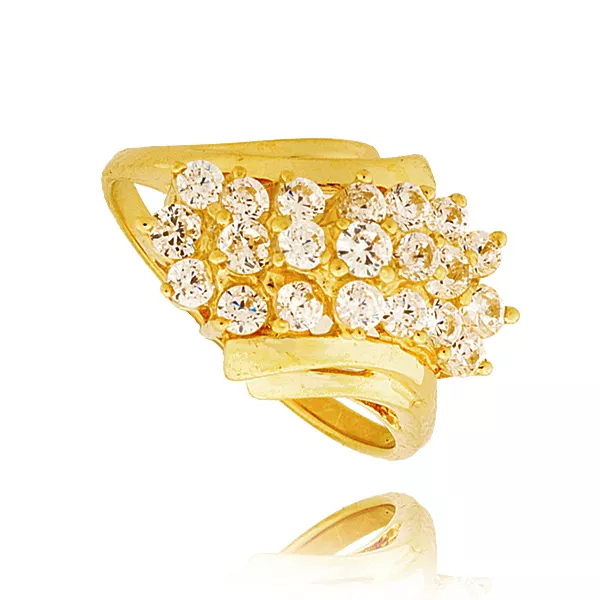 Stylowy pierścionek będący doskonałym wyborem dla osób ceniących jakość i estetykę. Subtelny połysk kamieni pięknie współgra z kolorem złota.