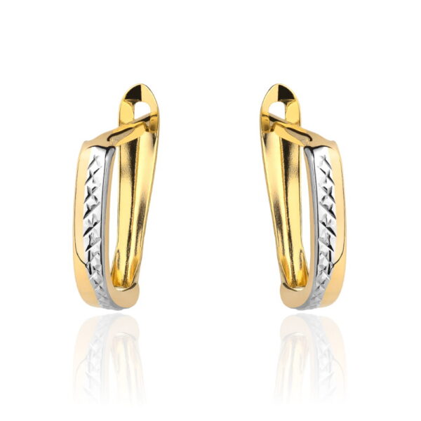 Kolczyki złote z diamentowaniem w dwóch kolorach złota